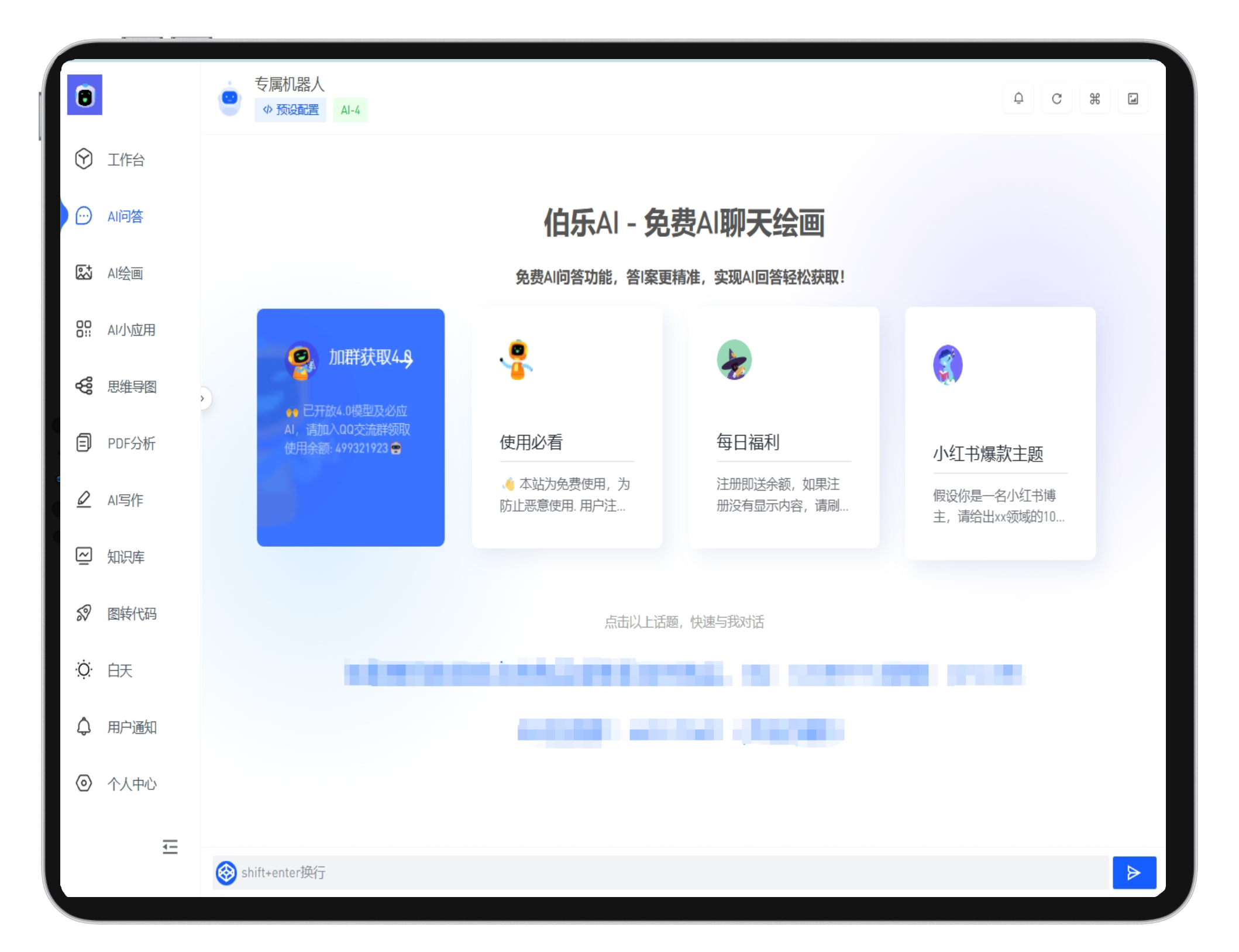 内置超多大语言模型,用户角色,快速发起对话,联网搜索获取即时信息
